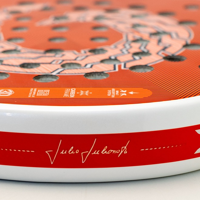 Assinada por Júlio Julianoti, um dos principais nomes do padel brasileiro, a JJ Limited Edition combina leveza e firmeza em uma configuração pensada para quem constrói os pontos com inteligência e precisão.