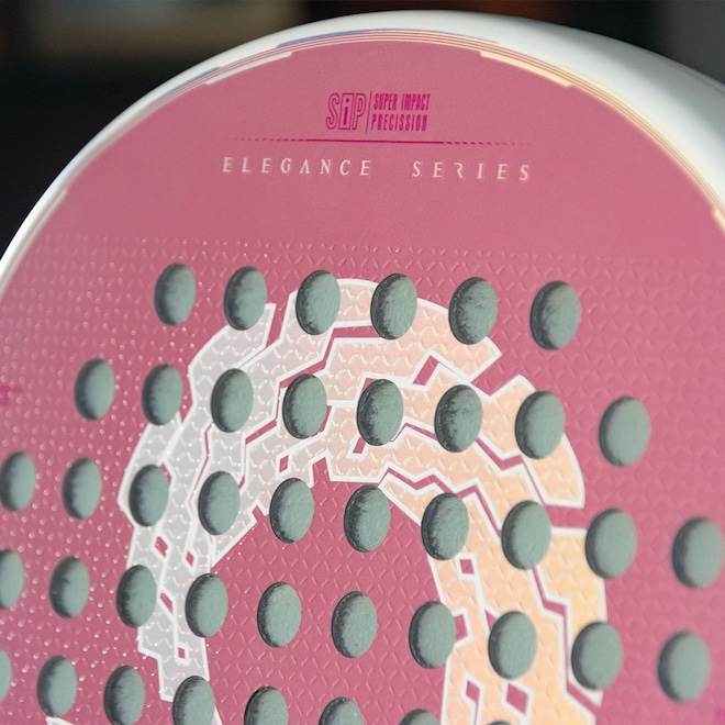 Seu frame em Carbono, aliado à face em Carbono 12K e ao núcleo EVA Soft White, proporciona estabilidade, absorção de impacto e firmeza nos golpes. A tecnologia AV-Block reduz vibrações e melhora o conforto durante o jogo.