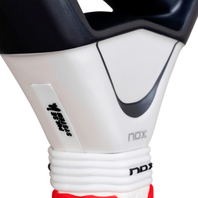 A face é construída com Carbon Fiber 12K Alum Xtrem, que mantém rigidez, estabilidade e desempenho uniforme mesmo em variações de temperatura. O frame em 100% Fibra de Carbono garante alta durabilidade estrutural. O núcleo utiliza a espuma HR3 White EVA, mais macia e de menor densidade, oferecendo excelente controle e toque suave — ideal para quem prefere sensação leve e confortável.