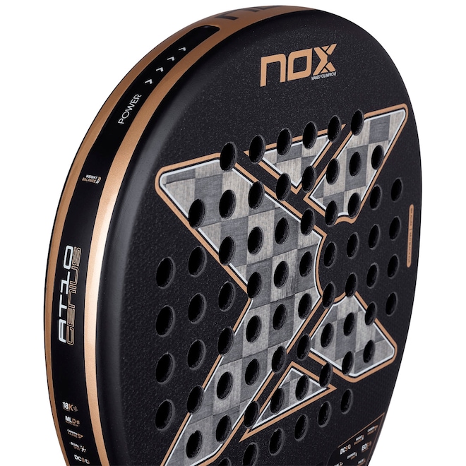 A NOX AT10 Genius 18K Alum 2026 chega para redefinir a experiência do jogador profissional, evoluindo o icônico modelo utilizado por Agustín Tapia com um novo molde, mais tecnológico e equilibrado. A grande inovação da temporada é o sistema Weight Balance, que permite ajustar o equilíbrio da raquete com precisão, proporcionando uma jogabilidade totalmente personalizável.