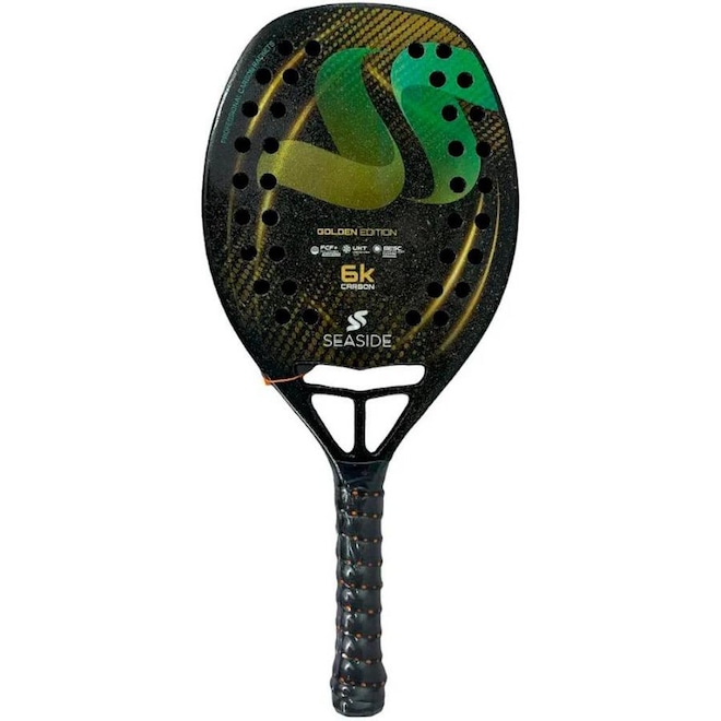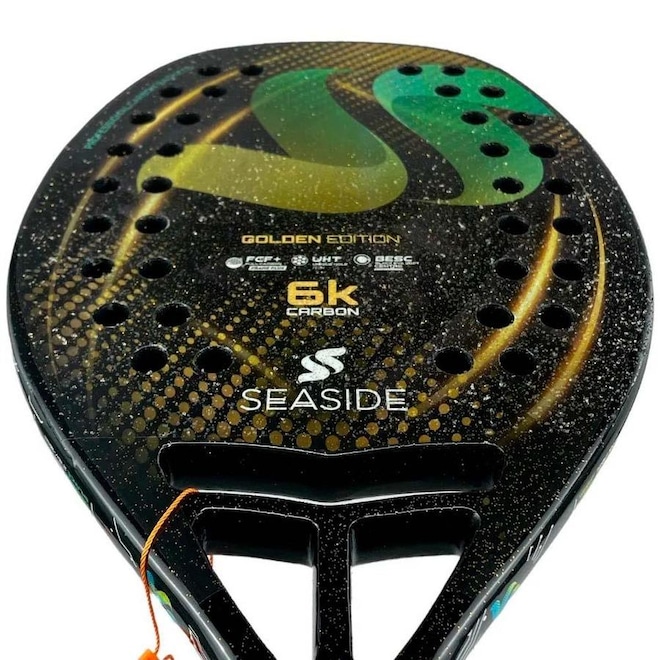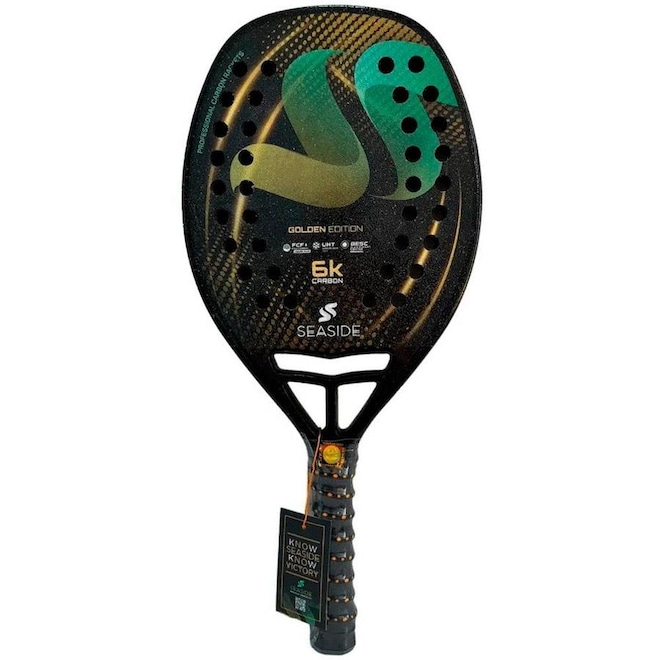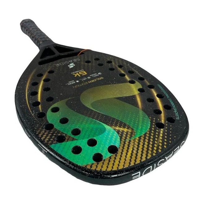 Descrição: Raquete Seaside de Beach Tennis Gold Edition 6k Carbon.