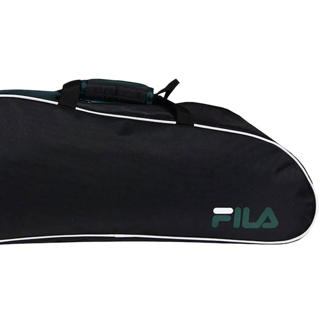 Indicada para prática do Tennis, a Raqueteira Fila Pomezia traz bolso porta-raquete com fechamento em zíper, bolso frontal embutido com zíper, estampa personalizada, alça de mão e alça lateral removível com apoio de ombro. Dimensões (L X A X P): 71 x 26 x 15 cm. Capacidade: 27,6 L.
