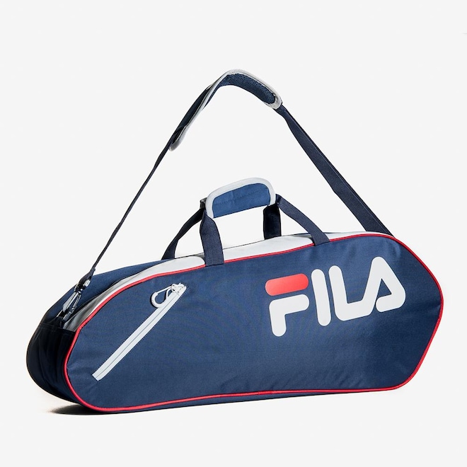 Indicada para prática do Tennis, a Raqueteira Fila Pomezia traz bolso porta-raquete com fechamento em zíper, bolso frontal embutido com zíper, estampa personalizada, alça de mão e alça lateral removível com apoio de ombro. Dimensões (L X A X P): 71 x 26 x 15 cm. Capacidade: 27,6 L. MARINHO,BRANCOref: M17M5J