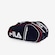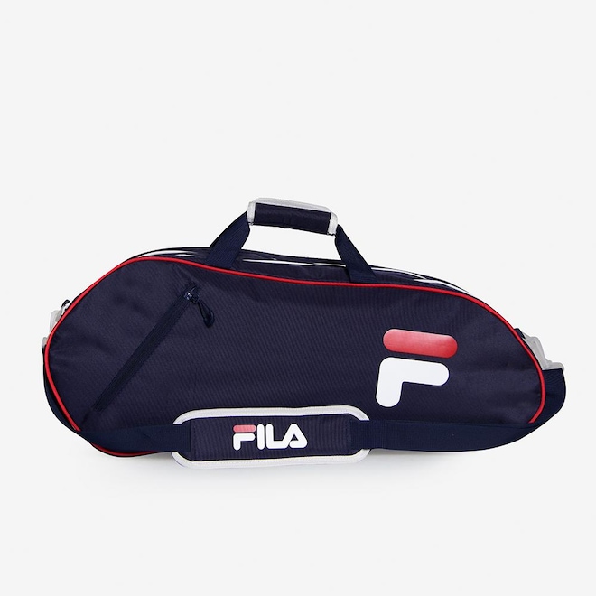 A Raqueteira de Tennis Fila Vicenza possui compartimento principal com fechamento em zíper, bolso porta-raquete, bolso frontal com zíper, alça de mão com estampa personalizada e alça lateral removível com apoio de ombro. Dimensões (L X A X P): 70 x 28 x 20 cm. Capacidade: 39,2 L. MARINHOref: M17M5K