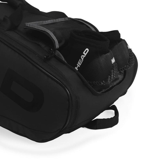 Conheça as Raqueteira Head Padel Pro X - Perfil: Padel e Beach Tennis - Material: Externo: 60% PU e 40% Poliéster Reciclado, Interno: 75% Poliéster, 25% TPE - Detalhamento: Raqueteira para raquetes de Beach Tennis ou Padel, capacidade para até 11 raquetes de beach tennis sem capa ou 7 raquetes de padel sem capa, possui três compartimentos com fechamento em zíper, em um deles possui um bolso interno em mesh, um dos compartimentos é térmico revestido com CCT, bolso externo em cada lateral, um bolso para acomodar peças úmidas ou um par de calçados, alça ajustável acolchoada com proteção para os ombros, alça reforçada de mão, marca Head estampada nas duas faces da raqueteira - Garantia do fabricante: Contra defeito de fabricação - Origem: Importado.