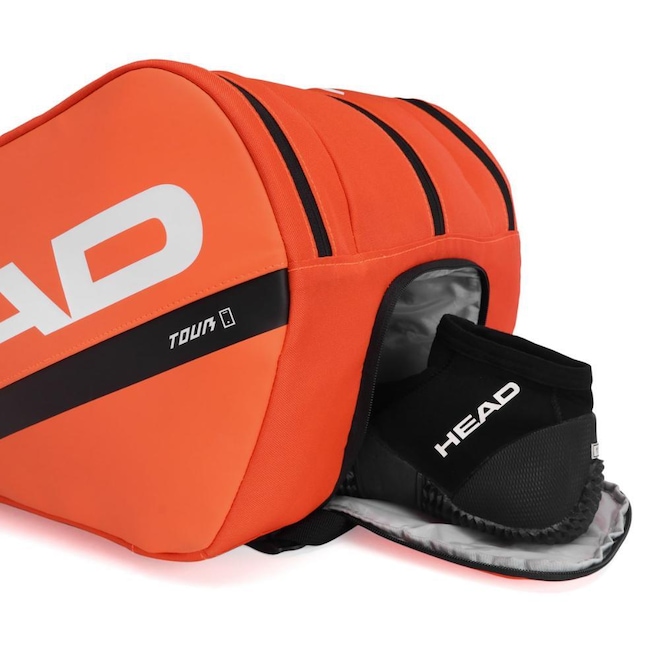 A Head é uma marca líder no mercado mundial nos segmentos de Esportes de Inverno, Raquetes e Mergulho. Seus produtos são desenvolvidos com alta tecnologia, performance e são utilizados por alguns dos melhores atletas do mundo. Agora, conheça a Raqueteira Head Tour Padel e Beach Laranja, que foi desenvolvida para atender suas necessidades em relação ao transporte de seus equipamentos.