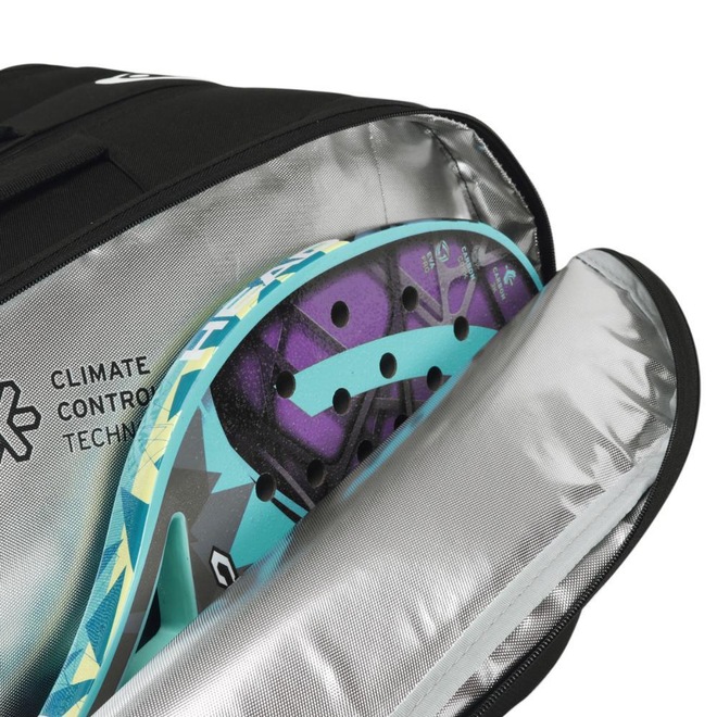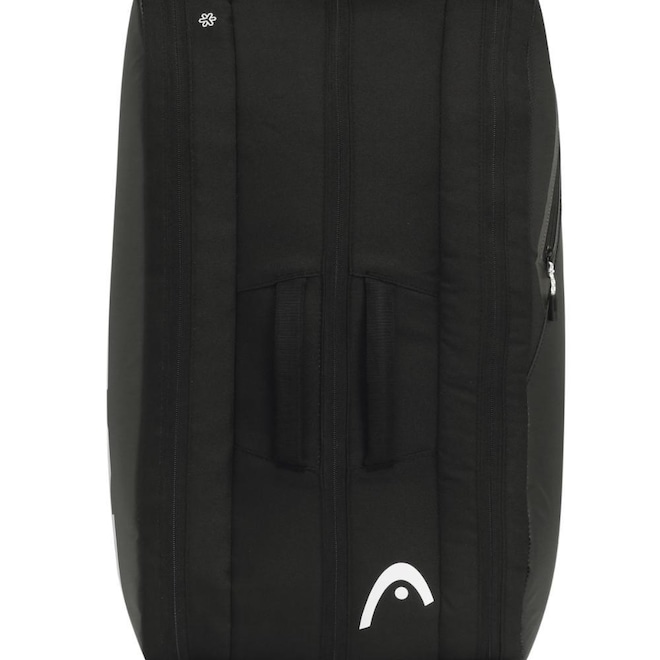 - Detalhamento: Raqueteira para raquetes de Beach Tennis ou Padel, capacidade para até 09 raquetes de beach tennis ou padel sem capa ou 7 raquetes de beach tennis ou padel com capa, possui três compartimentos com fechamento em zíper, um dos compartimentos é térmico revestido com CCT, bolso externo na lateral, um bolso para acomodar peças úmidas ou um par de calçados, alça ajustável acolchoada com proteção para os ombros, alça reforçada de mão, marca Head estampada nas duas faces da raqueteira;