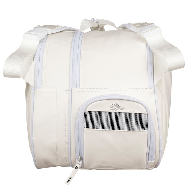 A Raqueteira Nox Pro Series Branca foi desenvolvida para quem busca praticidade, proteção e um design limpo para acompanhar treinos, partidas e deslocamentos diários. Mesmo com formato compacto, oferece excelente capacidade interna e organização inteligente para transportar raquetes, roupas e acessórios com segurança.