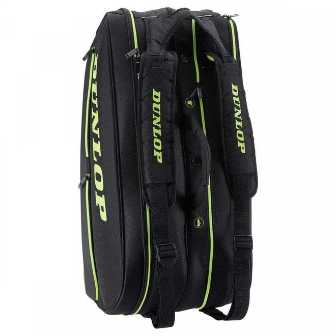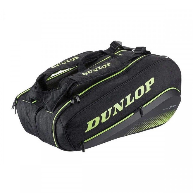 Feita com materiais duráveis e alças ergonômicas, esta raqueteira pode transportar tudo que você necessitar.  Especificações:- Perfil: Tênis - Material: 1680 Ballistic polyester - Detalhamento: Contém três compartimentos, sendo um térmico, com capacidade para transportar até 8 raquetes ao todo, no compartimento principal possui duas divisórias centrais para organização de suas roupas e sapatos com respiro para acomodar peças úmidas ou um par de calçados, possui dois bolsos pequenos na lateral para melhor organização de seus pertences e acessórios, escrita Dunlop em ambos os lados e nas alças, alças ajustáveis e colchoadas ??permitem que a bolsa caiba no seu corpo, espalhando o peso da bolsa uniformemente pelos ombros - Garantia do fabricante: Contra defeito de fabricação - Origem: Importado.