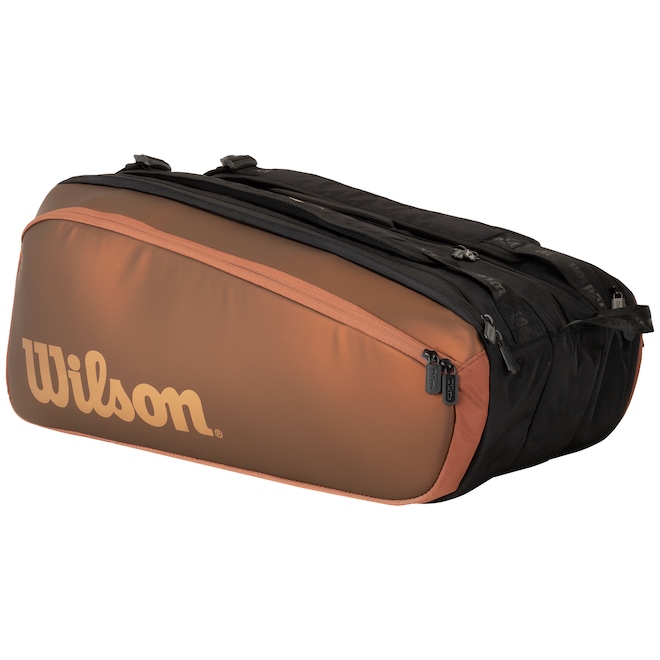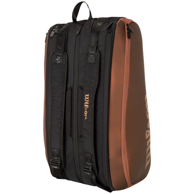 Com capacidade para até 15 raquetes, ela conta com compartimentos térmicos que protegem o equipamento contra variações de temperatura, bolsos para acessórios e design premium inspirado na linha Pro Staff v14.