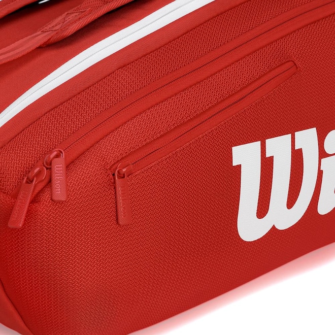 Conheça as características da Raqueteira Wilson Super Tour 9Pk Vermelha e Branca