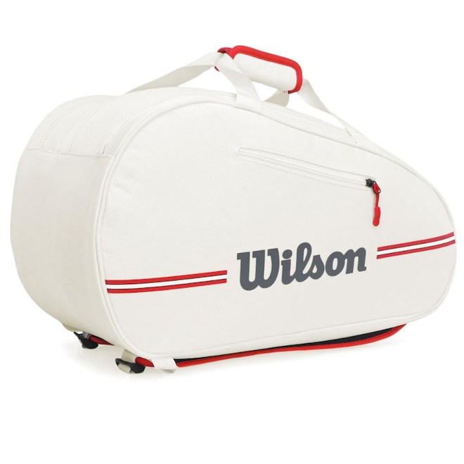 A Wilson é uma empresa líder no desenvolvimento de artigos esportivos para Tênis, Padel, Beach Tennis, Golfe, Futebol Americano, Basquete, Baseball, Vôlei de Praia, entre outros esportes, comercializando seus produtos em mais de 120 países ao redor do mundo. Sempre inovadora, traz o que há de melhor em tecnologia. Um exemplo disso é a Raqueteira Wilson Team Padel Off White, que é uma raqueteira completa para quem busca funcionalidade e praticidade em cada treino ou partida.