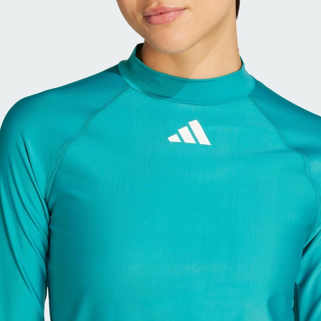 Do vôlei de praia ao SUP yoga, esta rash guard adidas foi feita para curtir o sol com estilo e proteção. A modelagem justa e o tecido elástico permitem que você se movimente livremente, enquanto as mangas longas e a gola alta oferecem cobertura extra. O pequeno logo de Três Barras acrescenta um toque esportivo.
