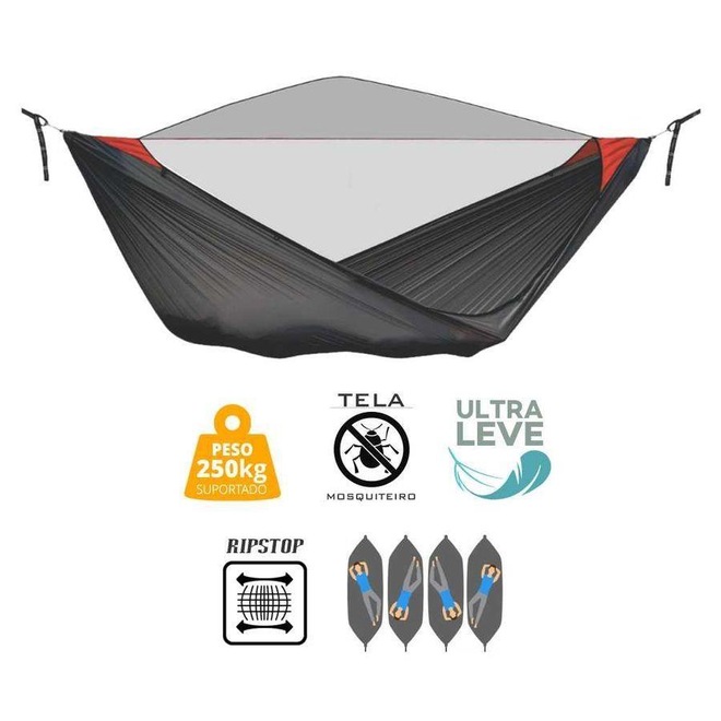 de rápida montagem, a rede de descanso Tirol da Azteq conta com tela mosquiteiro acoplada, que protege contra a entrada dos menores insetos.