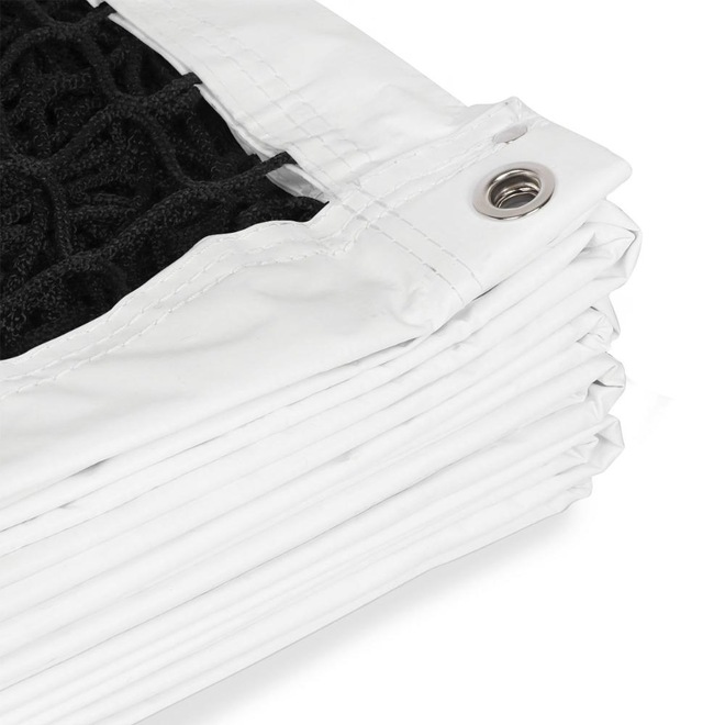 - Detalhamento: Rede com proteção UV, que evita a degradação dos polímeros por ação do tempo. Fabricada com matéria-prima virgem de alta densidade para maior durabilidade. Fio trançado de 4mm. Possui 4 faixas de PVC branco: uma na parte superior, duas laterais com ilhós de latão antiferrugem e uma na base, formando um contorno completo em PVC;
