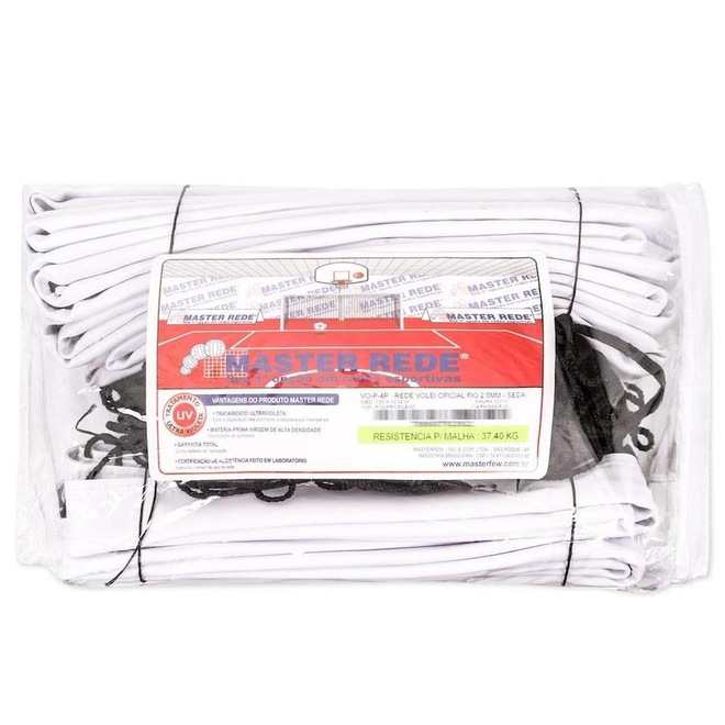 Rede de Vôlei Oficial Master Redes VO-P-4P Fio 2,5MM 04 Faixas PVC