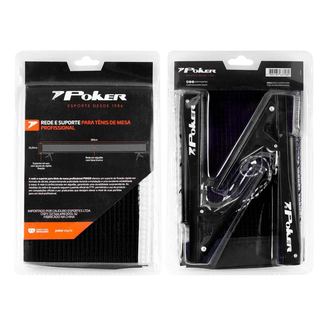 Rede e Suporte para Tênis de Mesa Profissional PokerA Rede e suporte para tênis de mesa profissional Poker oferece um suporte de fixação rápida em formato de alicate, proporcionando praticidade durante a instalação e uma excelente estabilidade à mesa. A rede é confeccionada em algodão, garantindo uma durabilidade surpreendente. As medidas da rede e do suporte seguem o padrão oficial da ITTF, permitindo o uso do produto em competições oficiais e por praticantes que desejam elevar o nível de suas partidas para um nível profissional.Tamanho da rede: 183 cm de largura x 15,25 cm de altura.Cor: Preto.Garantia contra defeito de fabricação.ref: M176TE