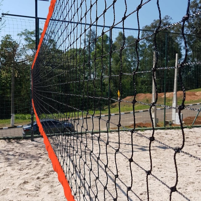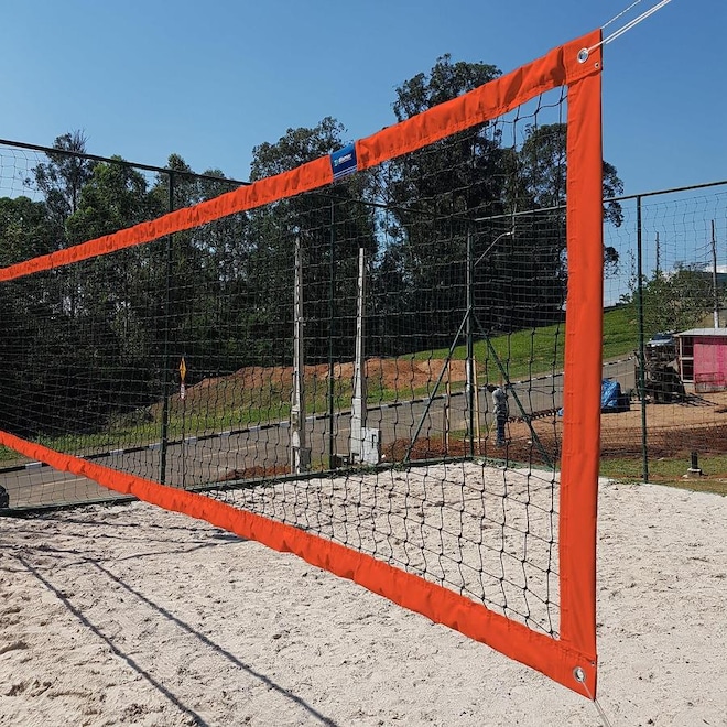 Medindo 9,50m de comprimento por 1,00m de altura, a Rede Multisport da Gismar Redes foi projetada para suportar partidas de Beach Tennis, Futevôlei ou Vôlei de Praia.