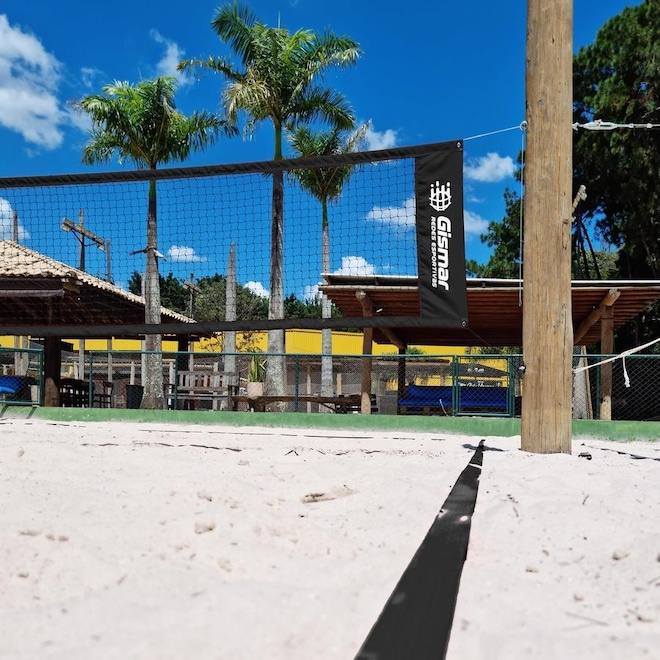 Medindo 9,50m de comprimento por 1,00m de altura, a Rede Multisport da Gismar Redes foi projetada para suportar partidas de Beach Tennis, Futevôlei ou Vôlei de Praia.