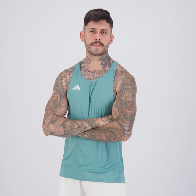Tecnologias AeroReady: Sistema que controla o excesso de umidade do corpo, garantindo a rápida secagem do suor durante os exercícios. Adizero: Tecnologia que fornece um ótimo conforto junto aos detalhes dos recortes. Composição: 100% Poliéster Cor predominante: Verde Indicado para: Treino Origem: Importada Gênero: Masculino Logo: Estampada Manga: Regata Gola: Careca Dimensões aproximadas (A x L): P (S): 71 x 48 cm M (M): 73 x 50 cm G (L): 75 x 52 cm GG (XL): 77 x 54 cm EG (2XL): 79 x 56 cm EEG (3XL): 81 x 58 cm
