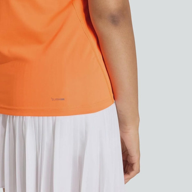 Tecnologia Climacool®: Sistema que se encarrega da gestão da ventilação e umidade do seu corpo, proporcionando conforto e performances excelentes. Composição: 88% Poliéster e 12% Elastano Cor Predominante: Laranja Origem: Importada Gênero: Feminino Logo: Estampada Manga: Regata Gola: Careca Dimensões aproximadas (A x L): PP (XS): 57 x 37 cm P (S): 60 x 41 cm M (M): 61 x 44 cm G (L): 62 x 48 cm GG (XL): 67 x 57 cm