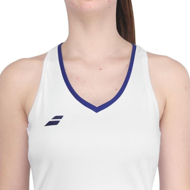 Descrição da Regata Babolat Play Tank Top Branca e Azul