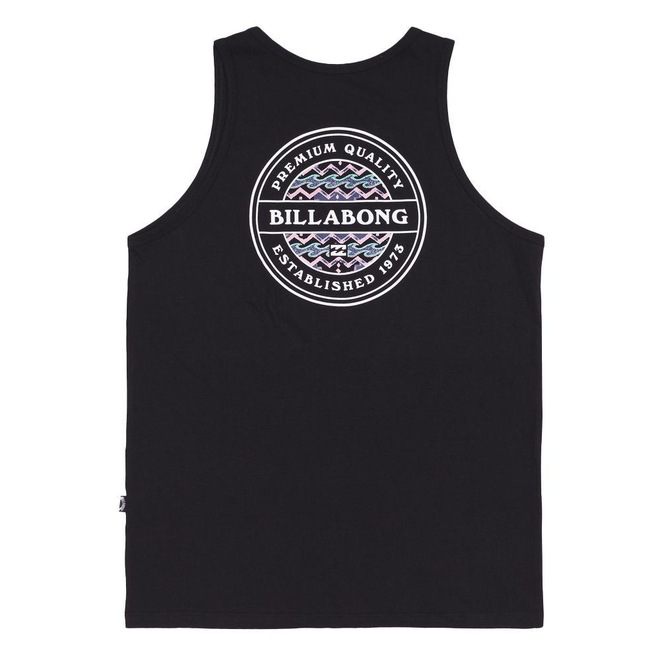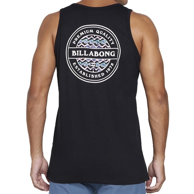 Regata Billabong feita em meia malha penteada de algodão fio 30.1, modelagem Core fit, estampa aplicada no peito e costas e etiqueta personalizada.