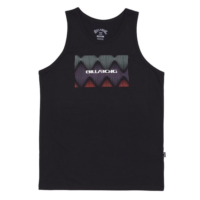Regata Billabong feita em meia malha penteada de algodão fio 30.1, modelagem Core fit, estampa aplicada no peito e etiquetas personalizadas.