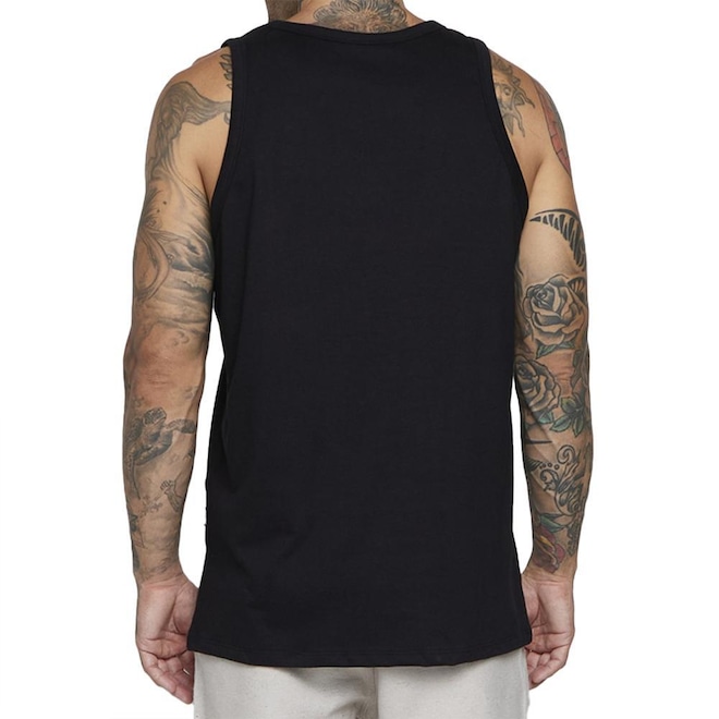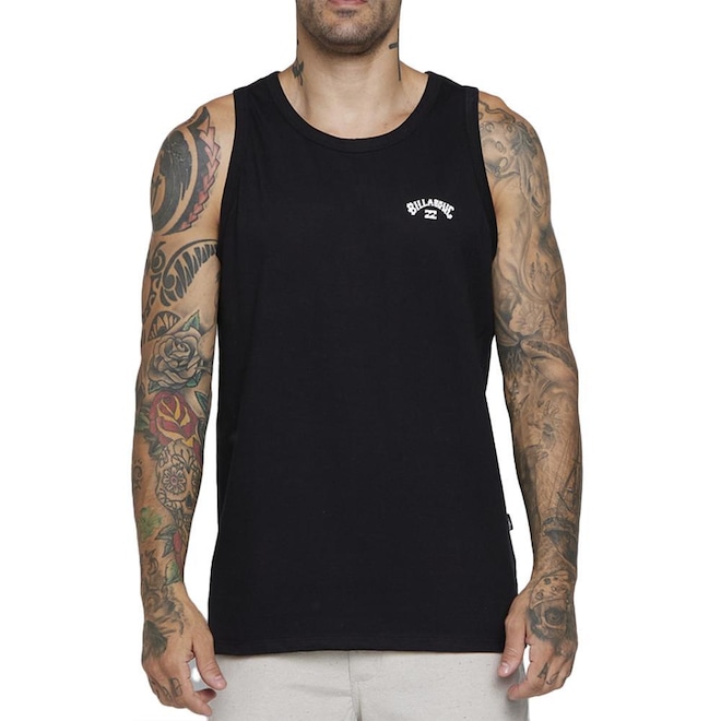 Regata Billabong feita em meia malha penteada de algodão fio 30.1, modelagem Core fit, estampa aplicada no peito e etiqueta personalizada.