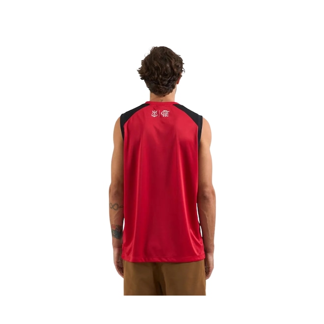 Com decote V, palas contrastantes e o CRF estampado em prata, a peça ainda conta com uma estampa de toque zero inspirada na textura de cestaria com listras irregulares, trazendo um visual único. Confeccionada em tecido muito leve, oferece excelente caimento, alta respirabilidade e absorção do suor, mantendo a pele seca e confortável durante o uso.