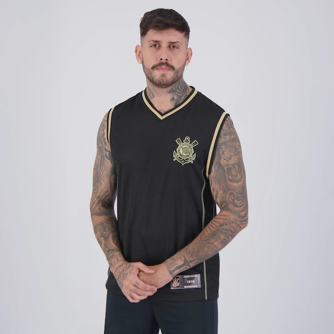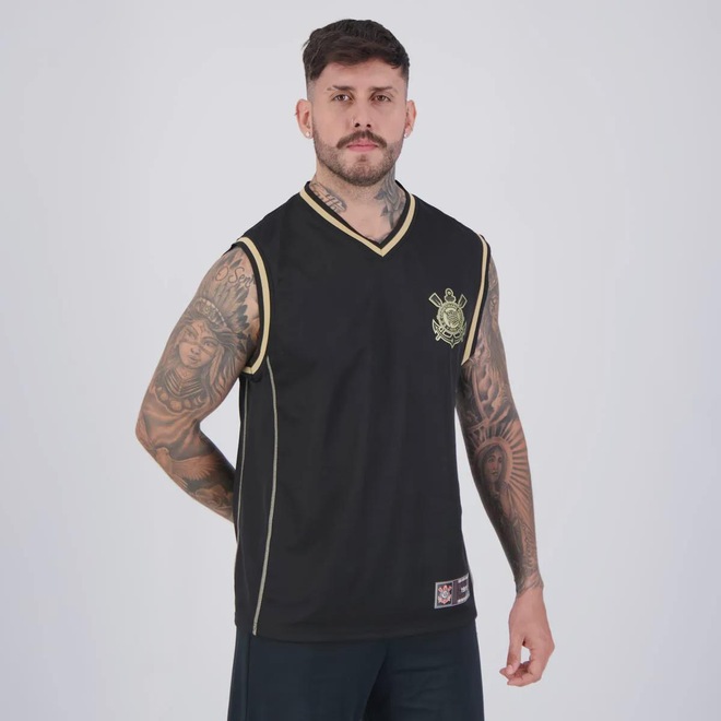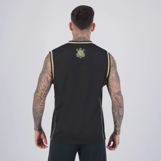 Composição: 100% PoliésterCor predominante: PretoIndicado para: CasualClube: CorinthiansGênero: MasculinoEscudo: EstampadoOrigem: NacionalManga: RegataGola: VDimensões aproximadas (A x L):P: 75 x 53 cmM: 77 x 55 cmG: 79 x 57 cmGG: 81 x 59 cmEG: 83 x 61 cm