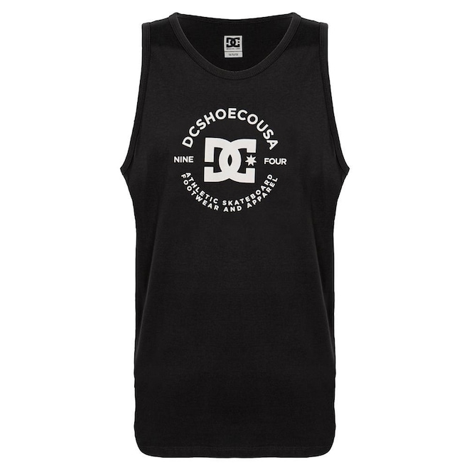 Regata Dc Shoes feita em meia malha 30.1, modelagem standard fit, estampa frontal e etiquetas personalizadas.