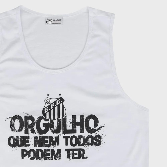 Exiba seu orgulho santista com a Regata Santos Masculina, ideal para quem não abre mão de conforto e estilo. Desenvolvida com materiais de qualidade, ela garante leveza e comodidade para suas atividades físicas, tarefas do dia a dia ou para os momentos de torcida. Garanta a sua!