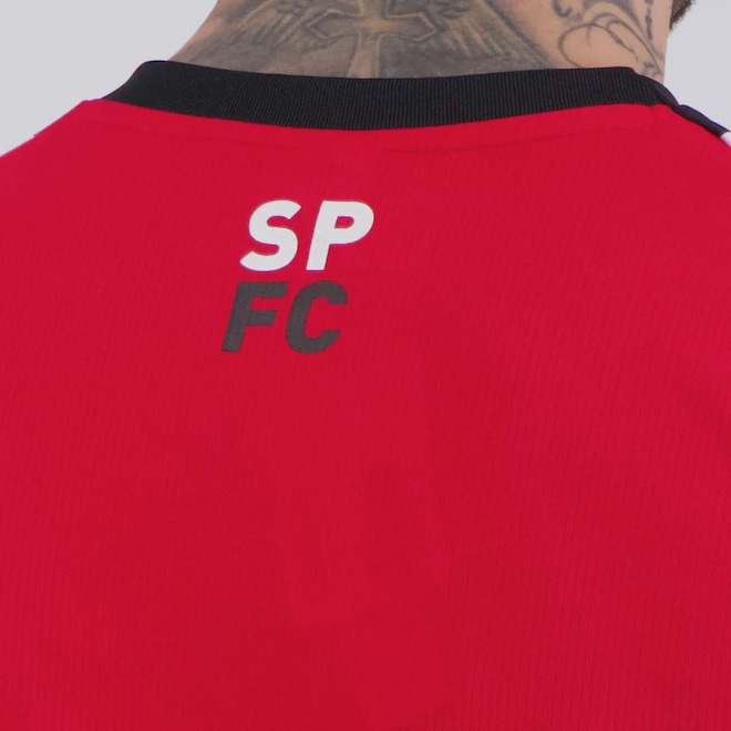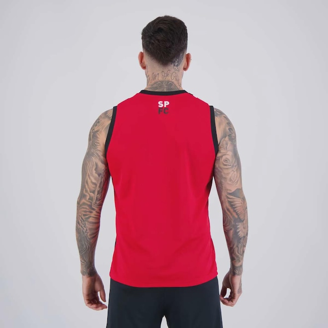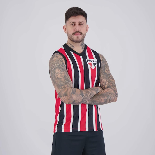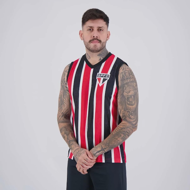 Composição: 100% PoliésterCor predominante: VermelhoIndicada para: CasualEscudo: EstampadoGênero: MasculinoOrigem: NacionalClube: São PauloManga: RegataGola: CarecaDimensões Aproximadas (A x L):P: 69 x 53 cmM: 71 x 55 cmG: 73 x 57 cmGG: 75 x 59 cm