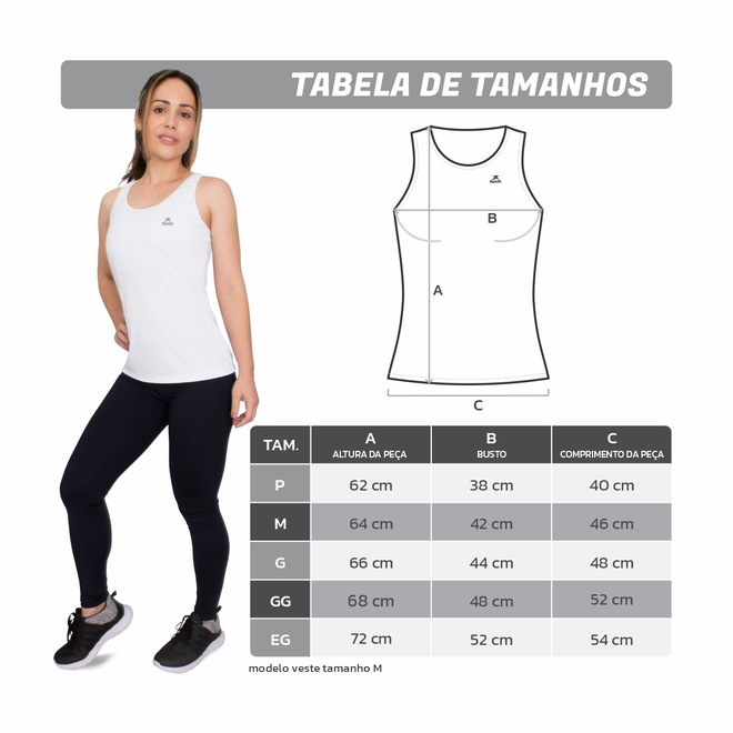MATERIAL LEVE E DE QUALIDADE: Regata 100% poliéster, com costura reforçada cujos pontos não estouram mesmo quando o tecido é esticado. É durável, fácil de lavar, seca com facilidade amassando pouco, e está disponível nos tamanhos do P ao EG
