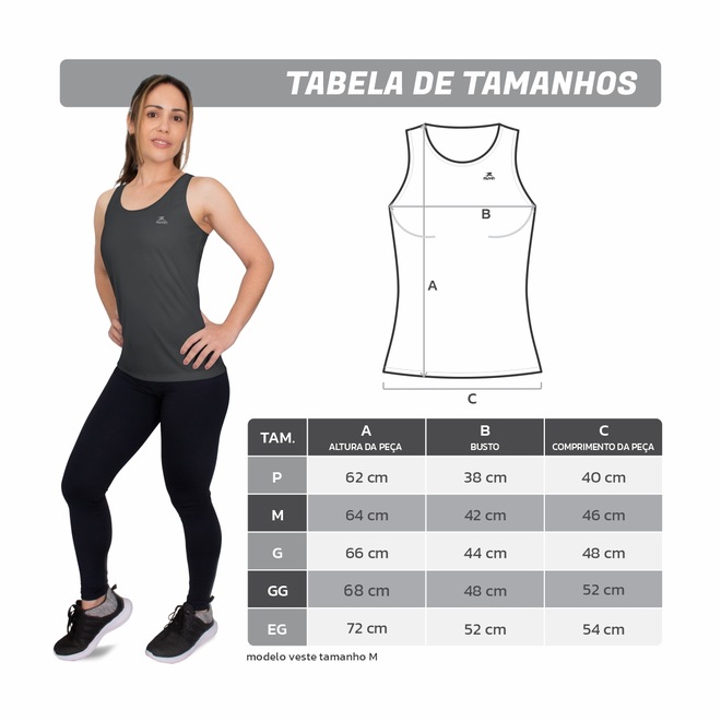 MATERIAL LEVE E DE QUALIDADE: Regata 100% poliéster, com costura reforçada cujos pontos não estouram mesmo quando o tecido é esticado. É durável, fácil de lavar, seca com facilidade amassando pouco, e está disponível nos tamanhos do P ao EG