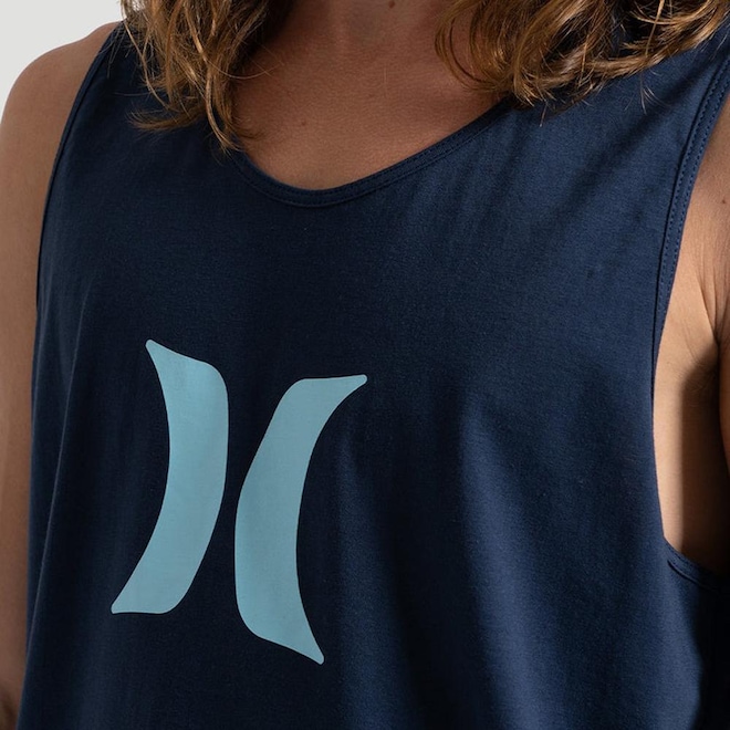 Regata Hurley feita em meia malha 30.1, gola rebatida, estampa localizada base dagua e etiqueta clips ONE&ONLY na barra.