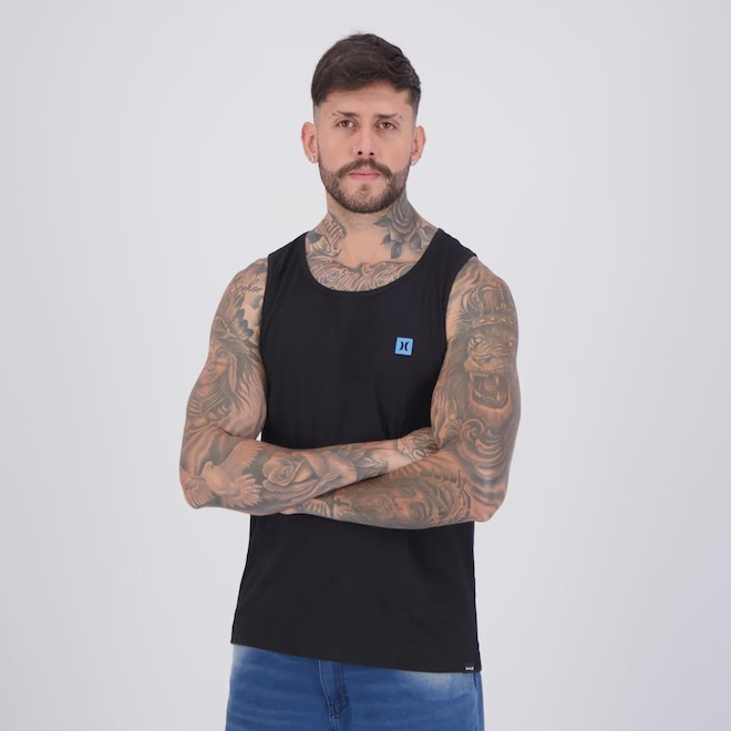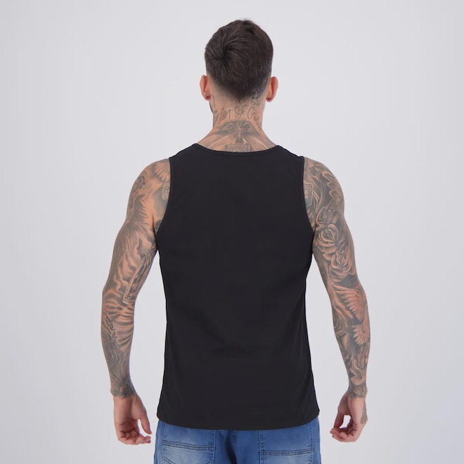 Cor predominante: Preta Composição: 100% Algodão Indicado para: Casual Gênero: Masculino Origem: Nacional Logo: Estampada Manga: Regata Gola: Careca Dimensões aproximadas (A x L): P: 75 x 51 cm M: 77 x 53 cm G: 79 x 55 cm GG: 81 x 57 cm