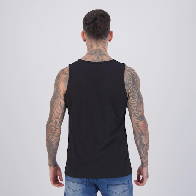 Composição: 100% Algodão Cor predominante: Preto Indicada para: Casual Gênero: Masculino Origem: Nacional Logo: Estampada Manga: Regata Gola: Careca Dimensões aproximadas (A x L): P: 71 x 52 cm M: 75 x 54 cm G: 77 x 56 cm GG: 79 x 58 cm