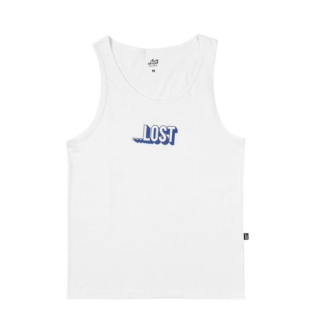 Regata Lost em modelagem regular, meia malha 30.1 e silk efeito mutante reagente à luz do sol, o qual, quando exposto à luz solar, emite o logo da marca por cima da estampa .