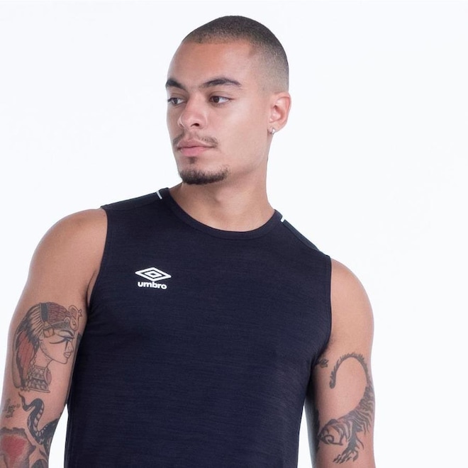 A Regata Umbro Blend é confeccionada em tecido 100% poliamida. Ela possui gola careca, ombros mais largos, detalhes em cor contrastante e costuras deslocadas nos ombros e nas laterais. Seu tecido conta com tecnologia de secagem rápida, proteção UV 15+, função antitranspirante e leveza. MESCLA,ref: M113Y5