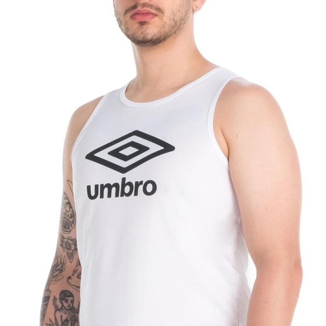 Regata masculina confeccionada em 100% poliéster com fio tecnológico que proporciona secagem rápida. Modelagem regular com gola careca em ribana. Possui maxi logo Umbro em silk centralizado na parte frontal superior.