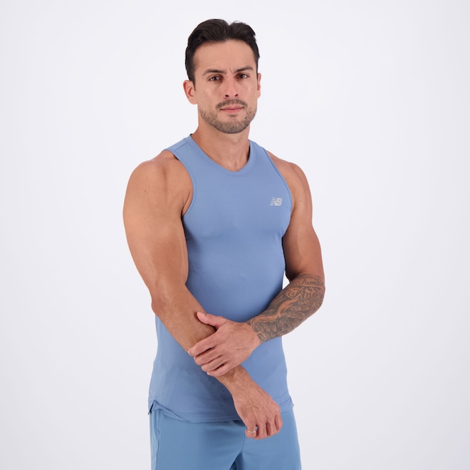 Tecnologia NB Dry: A tecnologia New Balance Dry ajuda a absorver e dispersar o suor, mantendo o corpo seco durante a atividade física. Oferece respirabilidade, secagem rápida e conforto térmico para melhor desempenho nos treinos. Composição: 100% Poliamida Cor predominante: Azul Indicada para: Treino Gênero: Masculino Logo: Estampada Manga: Regata Gola: Careca Dimensões aproximadas (A x L): P: 68 x 45 cm M: 70 x 50 cm G: 72 x 54 cm GG: 75 x 58 cm