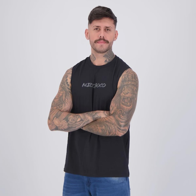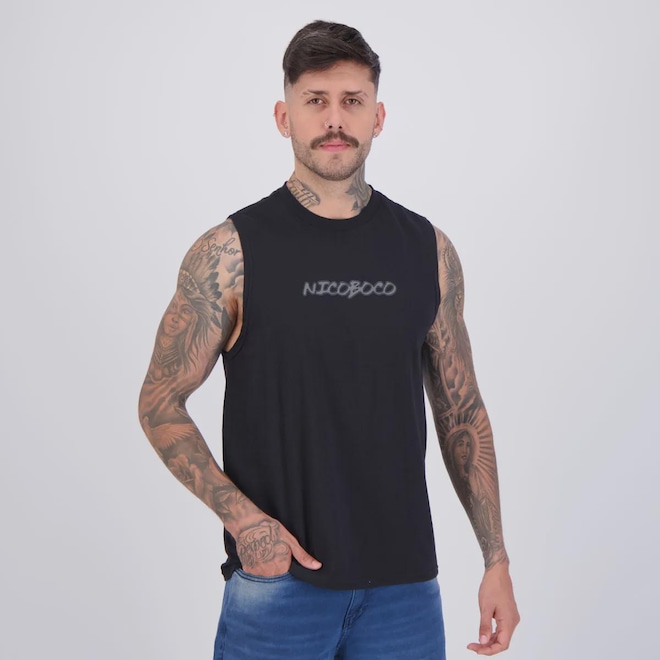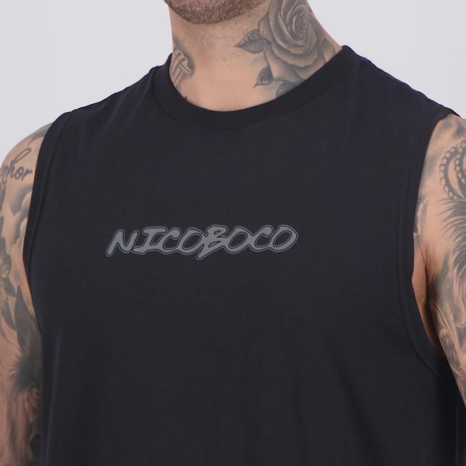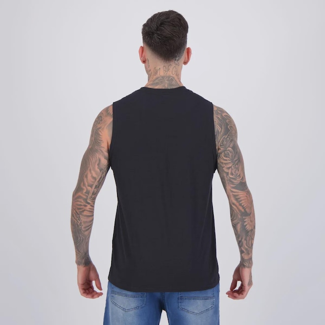 Composição: 100% Algodão Cor predominante: Preta Indicado para: Casual Gênero: Masculino Origem: Nacional Logo: Estampada Manga: Regata Gola: Careca Dimensões aproximadas (A x L): P: 71 x 53 cm M: 73 x 55 cm G: 75 x 57 cm GG: 77 x 59 cm