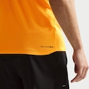 Uma bainha mais baixa em comparação com as antigas camisetas AeroSwift oferece cobertura adicional. As costuras entrelaçadas na cava e na gola ajudam a garantir uma sensação mais leve, reduzindo a fricção.