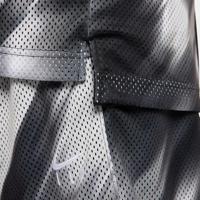 O design dupla face apresenta tela perfurada em um lado e uma tela menor do outro. Os dois lados são equipados com a tecnologia Dri-FIT para ajudar a manter seu corpo seco e confortável.