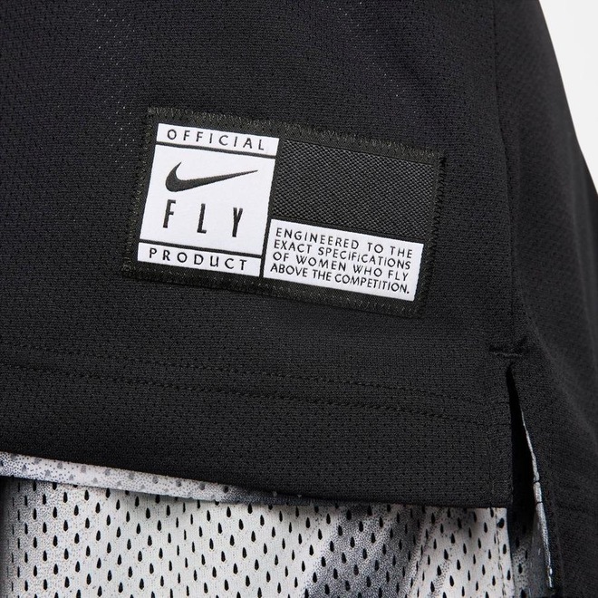 A estampa ?FLY? é inspirado em um anúncio dos anos 80 do Nike Basquete para o Air Force 3 que dizia: ?Quem disse que as mulheres não podem voar??. O anúncio memorável celebrou a atitude e o estilo que as mulheres trazem para o jogo.