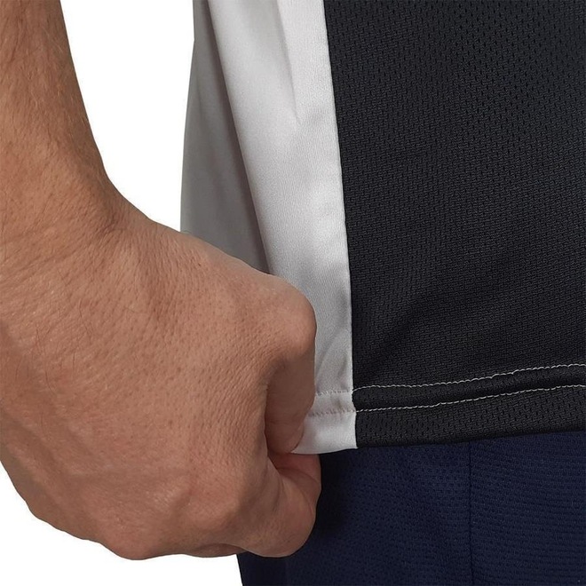 O escudo é visto em destaque e traz manga regata, que ajuda na flexibilidade dos movimentos.