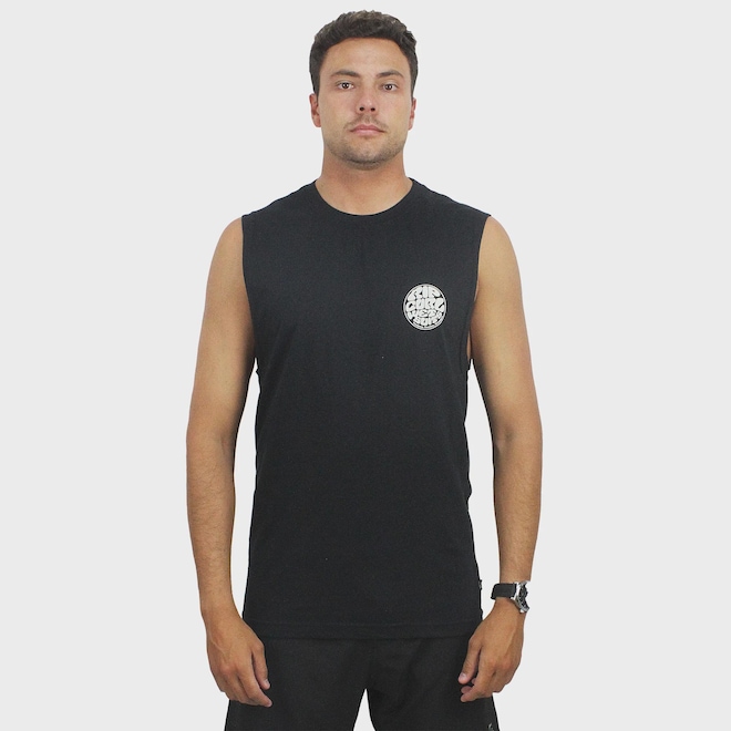 A Regata Rip Curl Front Wettie Muscle Black é produzida com tecido 1/2 malha 100% Algodão. Estampa com o tradicional logo Rip Curl Wettie em silk sem toque no peito. Gola com acabamento em ribana e etiqueta personalizada na lateral.