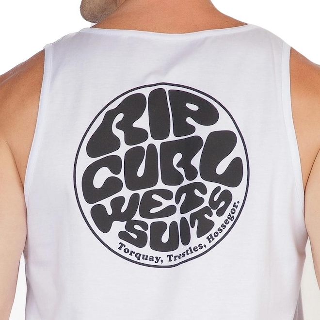 Regata Rip Curl feita em modelagem regular fit, meia malha 30.1 penteada, silk frente e costas e etiquetas personalizadas.